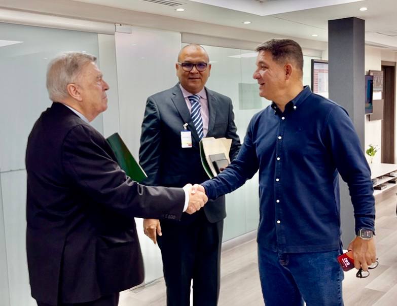 El director general de Conatel, Jorge Eliéser Márquez Monsalve, el presidente de la Bolsa de Valores de Caracas, José Grasso Vecchio y el superintendente nacional de valores, Carlos Herrera, se reunieron este miércoles para establecer las condiciones del proceso de subasta de los bloques de frecuencia CC’ DD’ FF’ GG’.